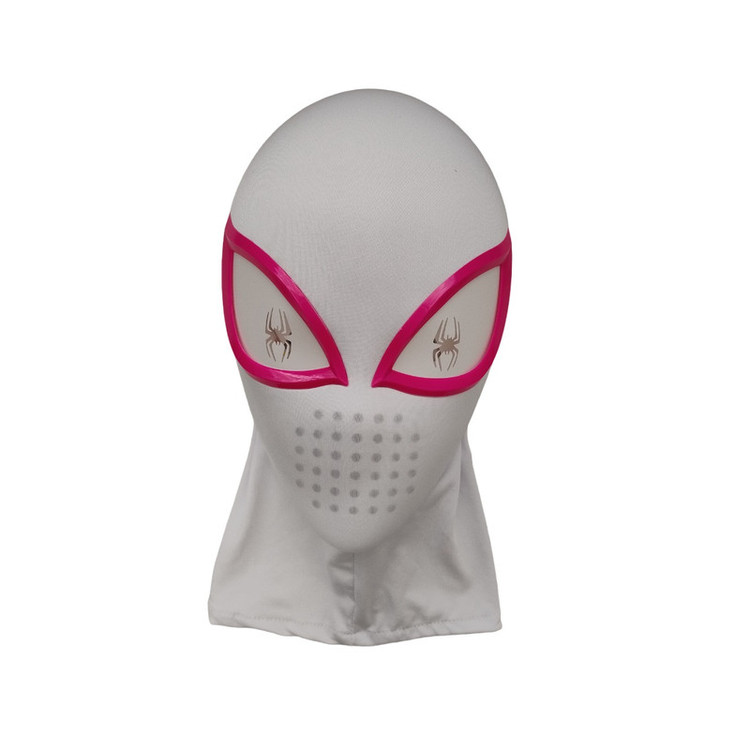 ماسک زن عنکبوتی ( Gwendolyne Maxine Stacy ) دارای سنسور لمسی که با لمس سمت راست پیشانی چراغ چشمها روشن میشود . نیاز به دو عدد باتری نیم قلمی میباشد که در بسته بندی موجود نیست .