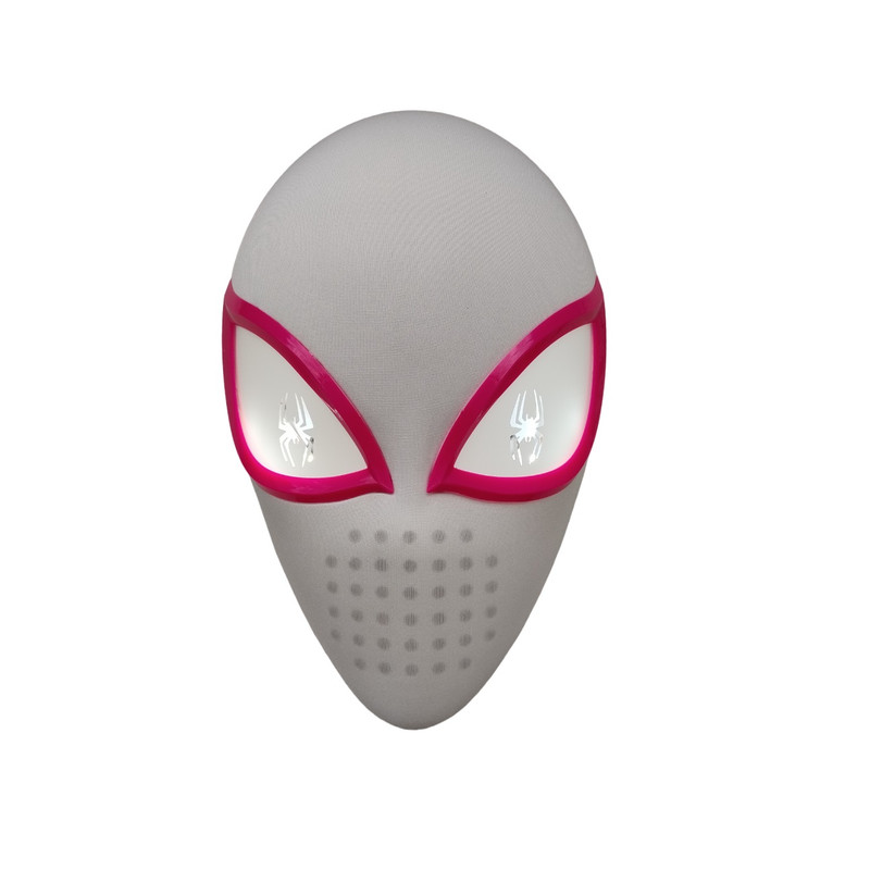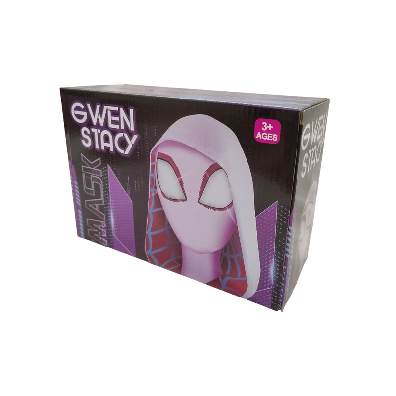 ماسک زن عنکبوتی ( Gwendolyne Maxine Stacy ) دارای سنسور لمسی که با لمس سمت راست پیشانی چراغ چشمها روشن میشود . نیاز به دو عدد باتری نیم قلمی میباشد که در بسته بندی موجود نیست .