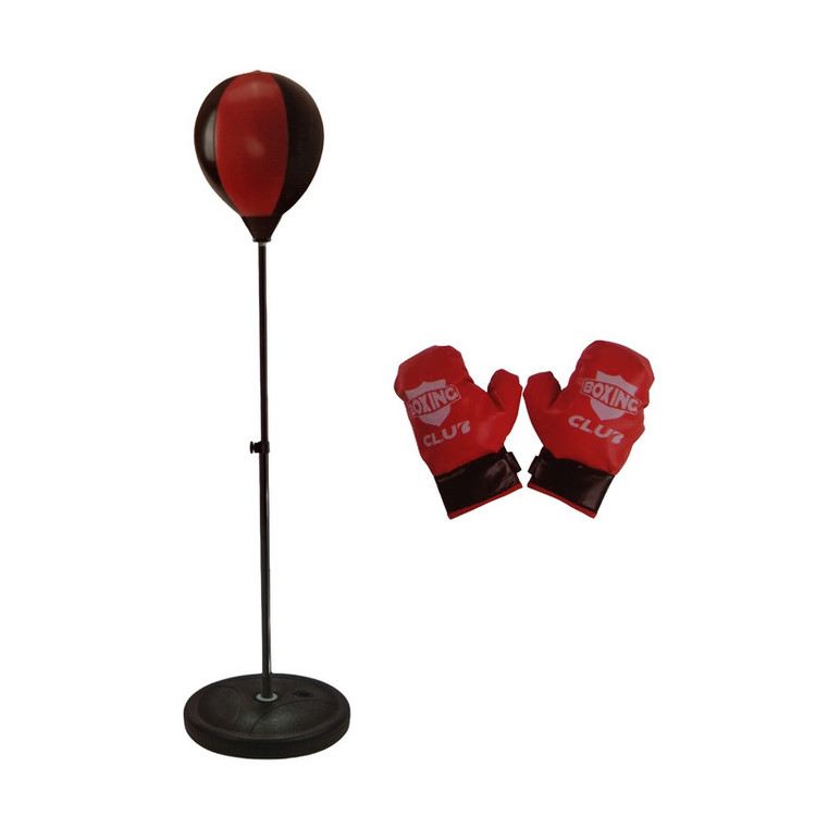کیسه بوکس کودک به همراه یک جفت دستکش بوکس دارای پایه فلزی که ارتفاع آن از 77 تا 113 سانتیمتر قابل تنظیم میباشد . برای سنگین شدن پایه باید آنرا با آب و یا ماسه یا خاک پر نمود . دارای کیفیت مرغوب ساخت کشور چین .
