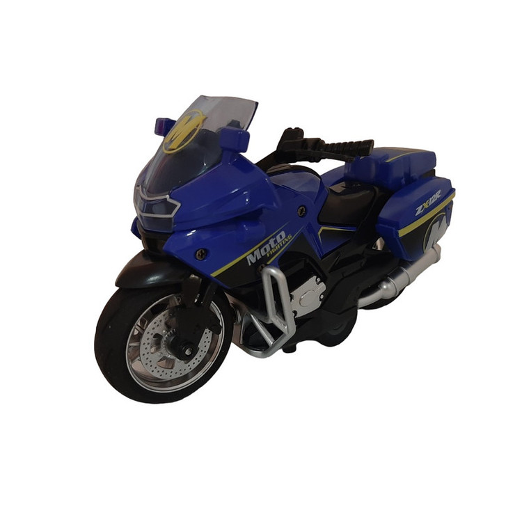 سایر توضیحات : موتور پلیس عقب کش به طول 13 سانتیمتر . چراغ جلو روشن میشود به همراه صدا . درب باکسهای کنار بازشو میباشد . ساخته شده از فلز و پلاستیک .