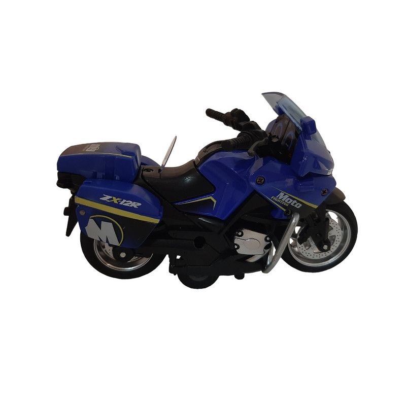 سایر توضیحات : موتور پلیس عقب کش به طول 13 سانتیمتر . چراغ جلو روشن میشود به همراه صدا . درب باکسهای کنار بازشو میباشد . ساخته شده از فلز و پلاستیک .