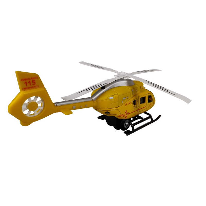 سایر توضیحات : هلیکوپتر اورژانس به طول 22 سانتیمتر عقب کش همراه با چرخش ملخ . با فشردن کلید روی هلیکوپتر چراغ داخل آن روشن شده همراه با جلوه صوتی . دارای دو درب بازشو . ساخت ایران . این محصول فاقد بسته بندی تکی شرکتی است و در بسته بندی پلاستیک حبابدار تقدیم میشود .