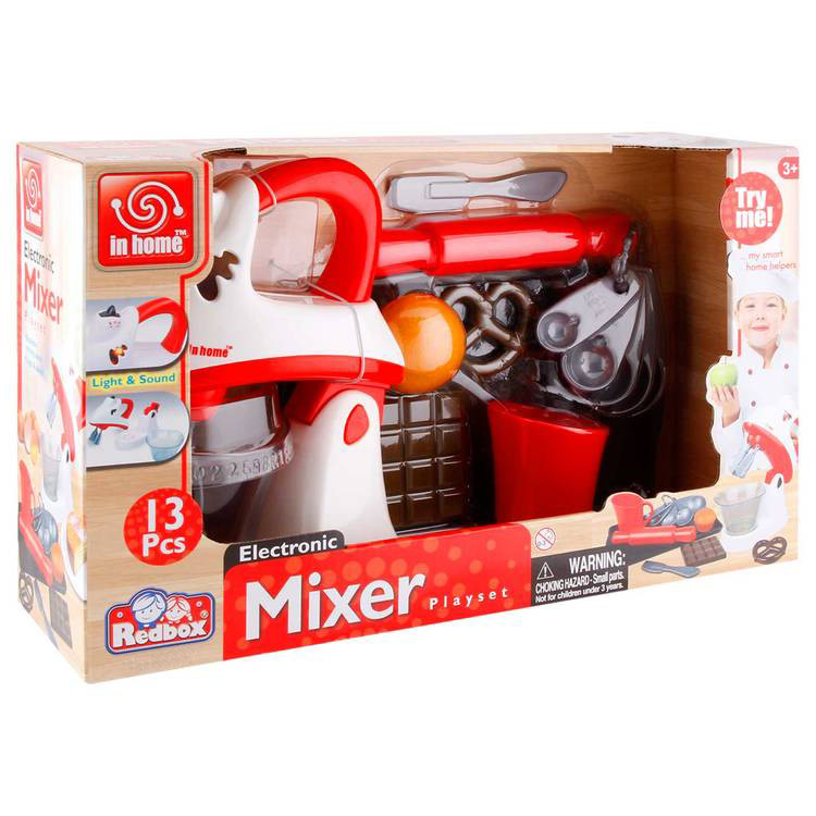 ست میکسر رد باکس شامل 13 قطعه متفاوت است که شامل میکسر , کیک ,شکلات تخت , پیمانه ,وردنه , سینی ,5 قاشق با سایز های مختف است که با جنس پلاستیک درجه یک ساخته شده اند.
