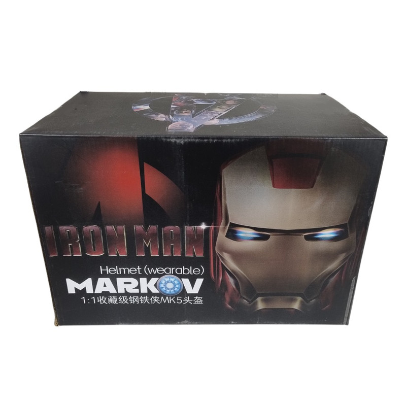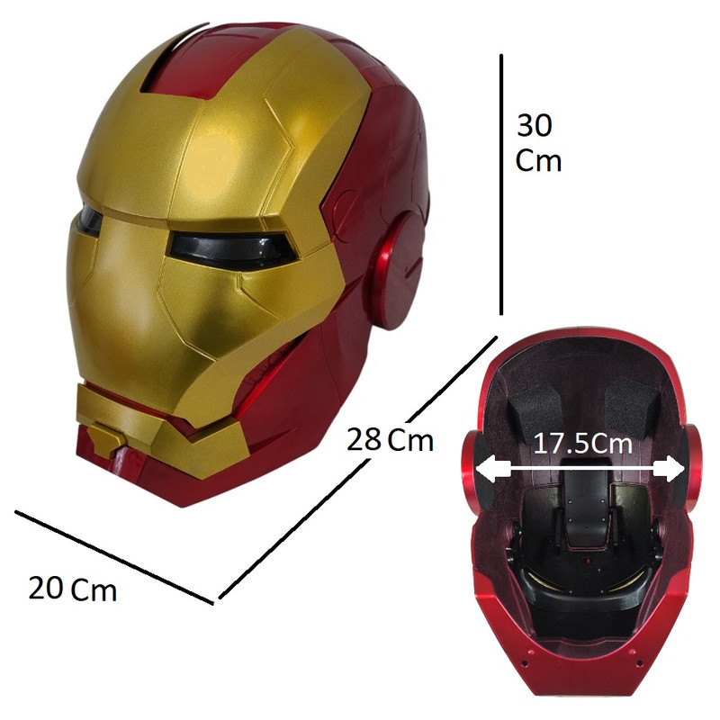 فول ماسک آیرونمن دارای چراغ در چشمها و جلوه های صوتی که با لمس سمت راست پیشانی میتوان آنرا تغییر داد. ابعاد ورودی سر 17.5 در 24 سانتیمتر ( 17/5 فاصله دو گوش ) .